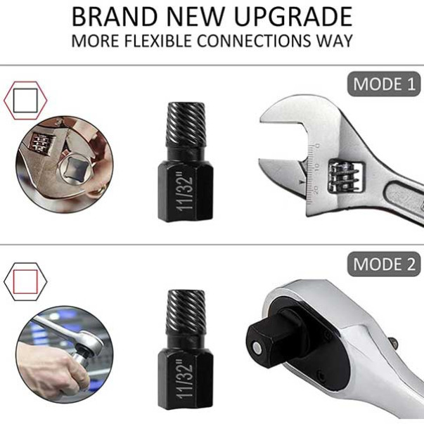 Minden eszköz jól láthatóan meg van jelölve a megfelelő mérettel az egyszerű azonosítás és kiválasztás érdekében. Úgy tervezték, hogy kompatibilis legyen bármilyen méretű csavarral és csavarral, és többféle lehetőséget kínál, hogy kielégítse a legtöbb elszívási igényt.