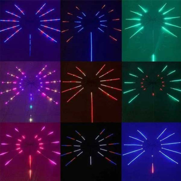 Ezek a tűzijáték LED-lámpák otthona legvonzóbb díszei lesznek. A fények mozgása és színe a tűzijátékhoz hasonlóan változik. Ezek a lámpák több millió színt, több száz statikus/dinamikus módot, a zenével való szinkronizálást, a fényerő beállítását és az alkalmazás időzítőjét tartalmazzák.