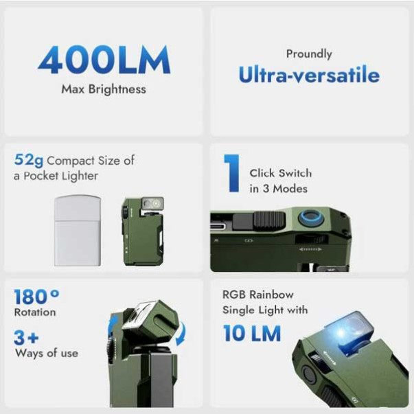 Az IP68 vízállóság, ütésállóság és a gyors USB-C töltés garantálja, hogy a zseblámpa soha nem hagy cserben. Robusztus kialakítás és sokoldalú funkciók teszik ideálissá kalandokhoz, munkához vagy otthoni használathoz.
