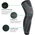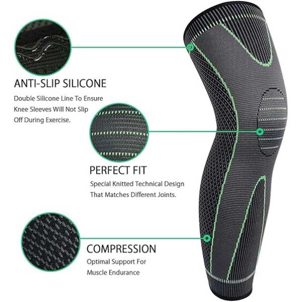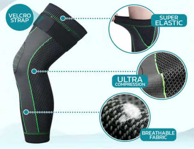 A kompressziós nyomás egyenletesen körülveszi a térdet és a combot, csökkentve az ízületek terhelését és segítve megelőzni a sérüléseket. Nagyszerű sporthoz, munkához vagy mindennapi mozgáshoz.