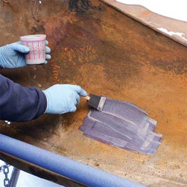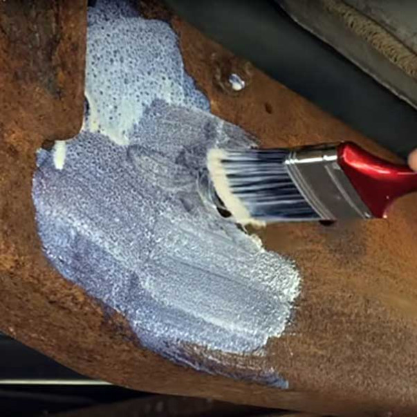 Az alvázrozsda-átalakító átalakítja, illetve egy sötét és polimer védőrétegre cseréli a meglévő rozsdát.